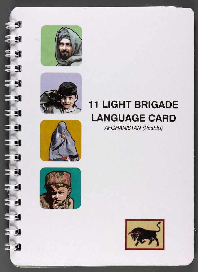 Soldiers on patrol would regularly have to communicate with Afghan locals. This guide allowed the soldier to communicate using pictures and key Pashtu words for a range of scenarios, from basic greetings to obtaining information about the location of Taliban fighters or IEDs.
